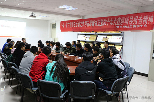 【必赢242net官网新闻中心讯 物理与电子电气工程学院】11月9日,物电学院团委组织开展了“一学一做”之学习石泰峰书记党的十九大宣讲辅导报告精神主题团日活动。 校学生会主席、物电学院2014级电子班胡桢麟胡桢麟同学围绕石...